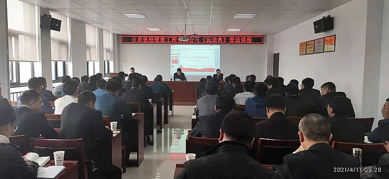 4月17日上午,隧道公司法律事務(wù)部組織了2021年度第一期法律知識培訓(xùn)班,特邀甘肅雷奇律師事務(wù)所王偉東律師對《民法典》總則部分進(jìn)行了講解。公司領(lǐng)導(dǎo)班子,機(jī)關(guān)各部門負(fù)責(zé)人,法律事務(wù)部、市場開發(fā)部、工程預(yù)(結(jié))算部全體人員,基層單位領(lǐng)導(dǎo)班子以及部分項(xiàng)目經(jīng)理共計60余人參加培訓(xùn)。