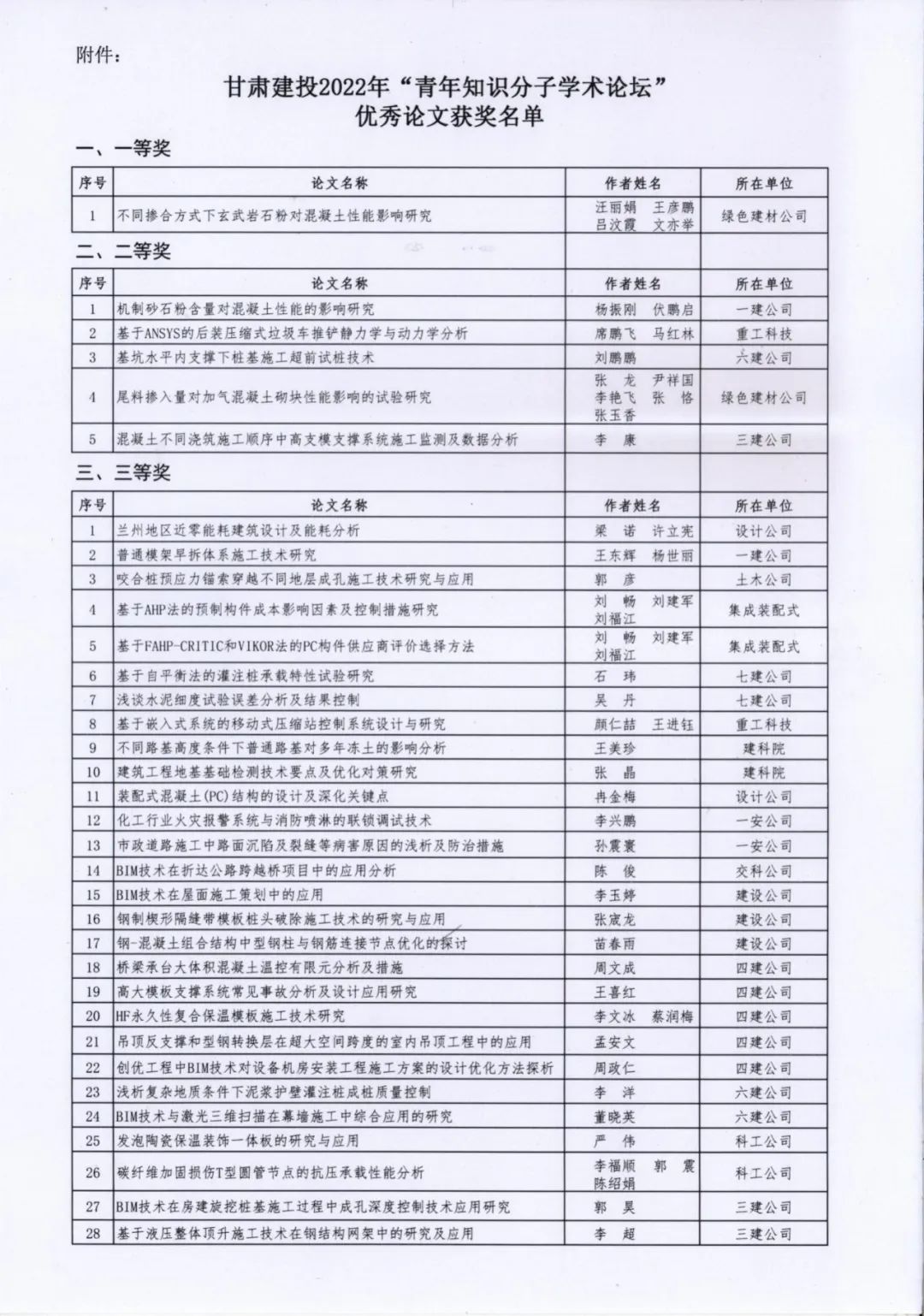 據(jù)悉,本次“青年知識分子學術(shù)論壇”共征集到學術(shù)論文358篇,經(jīng)過評委會嚴格審查,最終評選出優(yōu)秀論文34篇。其中,一等獎1篇、二等獎5篇、三等獎28篇。“青年知識分子學術(shù)論壇”是甘肅建投打造的重要學術(shù)平臺,旨在培養(yǎng)青年人才、交流科技成果、營造學術(shù)氛圍、塑造創(chuàng)新文化,是甘肅建投青年科技工作者展示能力風采、加強學習交流的重要舞臺。