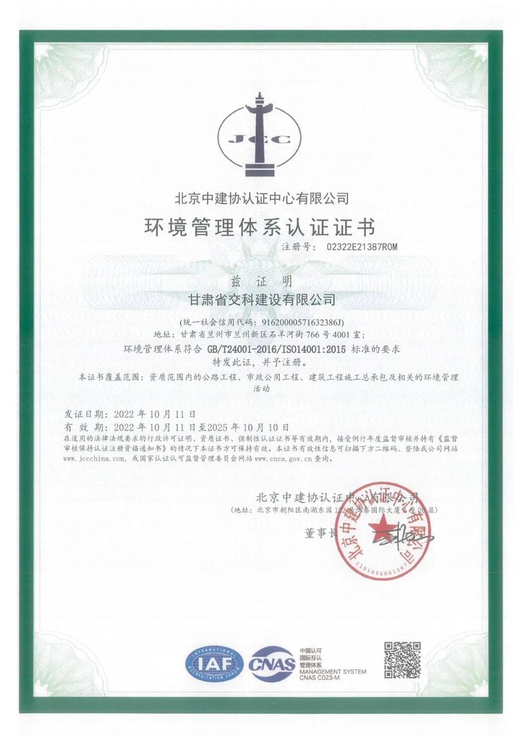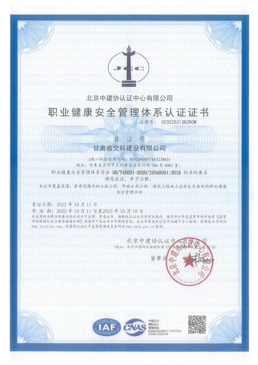 近日,甘肅省交科建設(shè)有限公司順利通過北京中建協(xié)認(rèn)證中心“三體系”一、二階段審核,并順利取得審核中心頒發(fā)的質(zhì)量、環(huán)境、職業(yè)健康安全管理體系認(rèn)證證書。