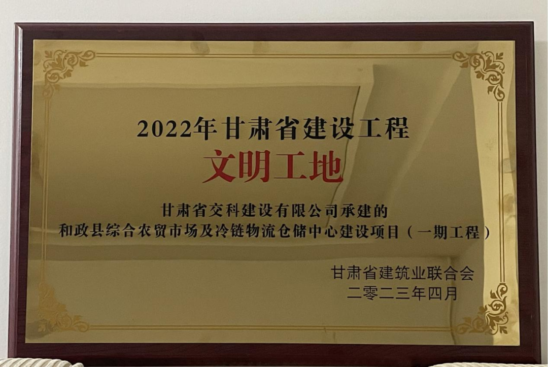 近日,甘肅省建筑協(xié)會(huì)公布,2022年度甘肅省建設(shè)工程文明工地評(píng)選結(jié)果,交科公司一公司和政縣農(nóng)貿(mào)市場(chǎng)項(xiàng)目榜上有名獲評(píng)2022年度“甘肅省建設(shè)工程文明工地”榮譽(yù)稱號(hào)!