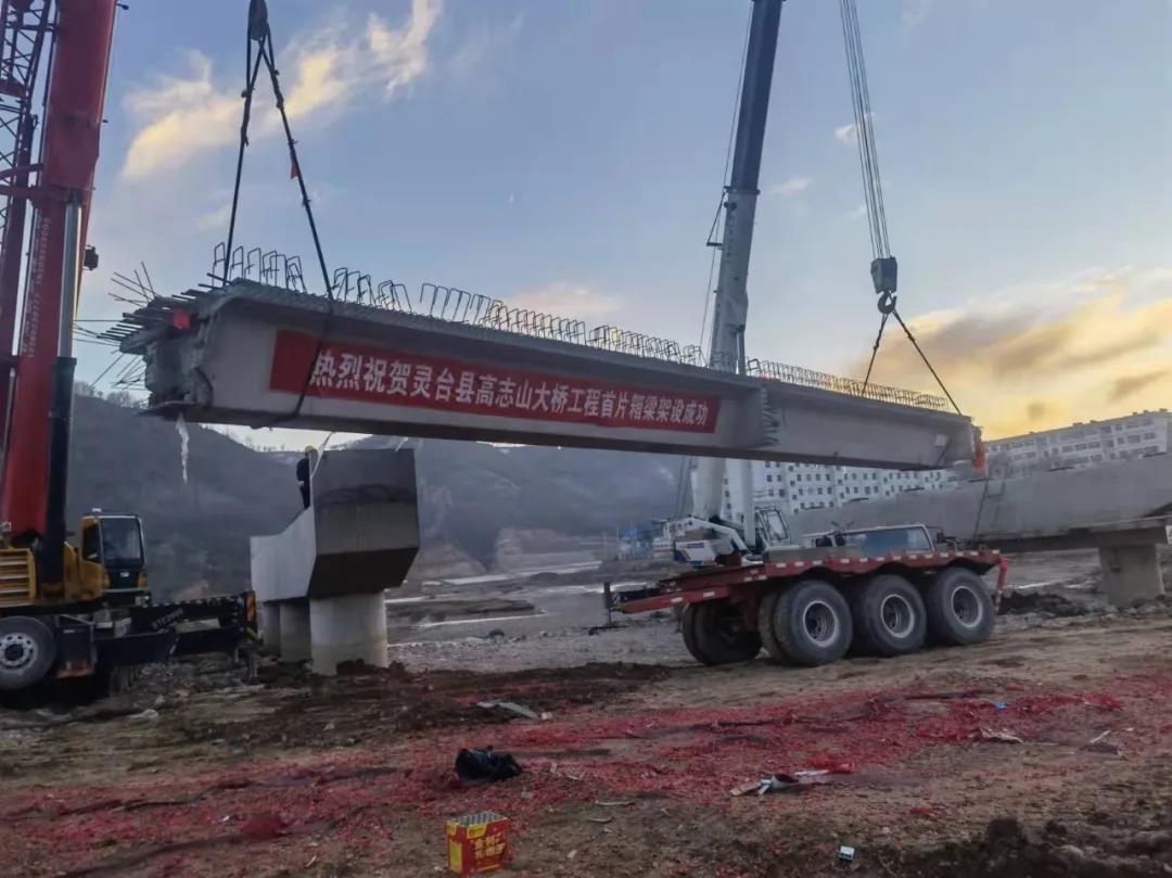 11月8日,萬(wàn)里晴空,一陣鞭炮聲中,隨著兩臺(tái)大型起吊設(shè)備緩緩升起、平穩(wěn)移動(dòng),重達(dá)近60T,長(zhǎng)20m的預(yù)應(yīng)力混凝土預(yù)制箱梁精準(zhǔn)落在了墩臺(tái)上,為高志山大橋49片預(yù)制箱梁的架設(shè)實(shí)現(xiàn)了良好的開(kāi)局,標(biāo)志著項(xiàng)目橋梁建設(shè)施工取得了突破性進(jìn)展。