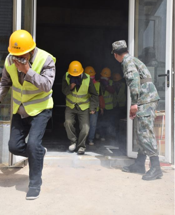 甘肅軍創(chuàng)培訓(xùn)中心培訓(xùn)人員在項(xiàng)目現(xiàn)場(chǎng)開展消防知識(shí)宣傳,向項(xiàng)目一線人員普及安全消防知識(shí),從火災(zāi)隱患自查、初起火災(zāi)自救、組織人員疏散、消防安全“四個(gè)能力”方面詳細(xì)講解了如何防范、預(yù)防火災(zāi)事故,詳細(xì)介紹消防防護(hù)裝備的作用,現(xiàn)場(chǎng)演示消防器材、防毒面罩等消防救援器材的使用方法。