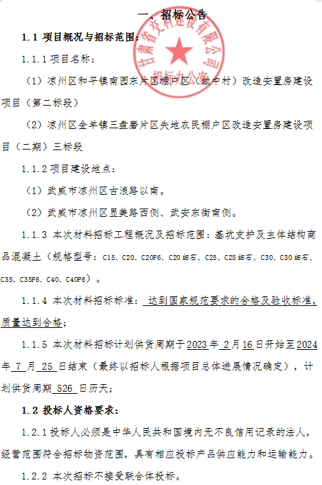 涼州區(qū)和平鎮(zhèn)南園東片區(qū)棚戶區(qū)(城中村)改造安置房建設(shè)項(xiàng)目(第二標(biāo)段); 涼州區(qū)金羊鎮(zhèn)三盤磨片區(qū)失地農(nóng)民棚戶區(qū)改造安置房建設(shè)項(xiàng)目(二期)三標(biāo)段商品混凝土招標(biāo)