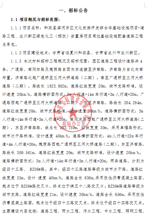 和政縣濱河東區(qū)文化旅游開發(fā)綜合體基礎(chǔ)設(shè)施項目-道路工程、蘭州新區(qū)綠色化工(棚改)安置房項目周邊基礎(chǔ)設(shè)施配套道路工程總承包-招標公告
