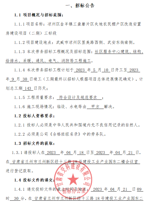涼州區(qū)金羊鎮(zhèn)三盤磨片區(qū)失地農民棚戶區(qū)改造安置房建設項目(二期)三標段 社區(qū)服務中心勞務招標公告