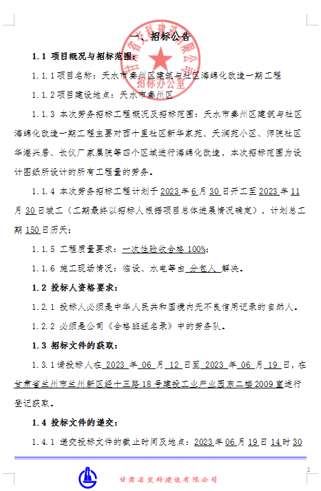 天水市秦州區(qū)建筑與社區(qū)海綿化改造一期工程-勞務(wù)招標(biāo)公告