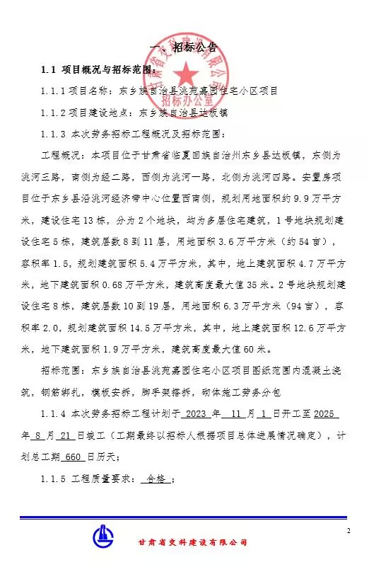 東鄉(xiāng)族自治縣洮苑嘉園住宅小區(qū)項(xiàng)目勞務(wù)招標(biāo)公告