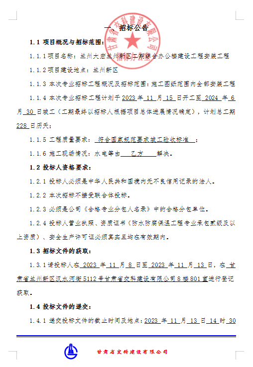 蘭州大宏蘭州新區(qū)二期綜合辦公樓建設工程-專業(yè)分包招標公告
