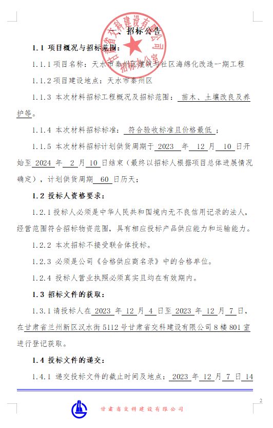 天水市秦州區(qū)建筑與社區(qū)海綿化改造一期工程項(xiàng)目材料招標(biāo)公告