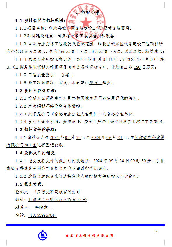 和政縣城東區(qū)道路建設(shè)工程瀝青道路面層-招標(biāo)公告