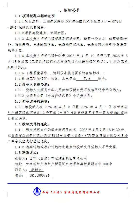 蘭州新區(qū)瑞嶺金和苑保障性租賃住房A區(qū)一期項(xiàng)目-19#-1#保障租賃住房-墻面一般抹灰等勞務(wù)分包招標(biāo)公告