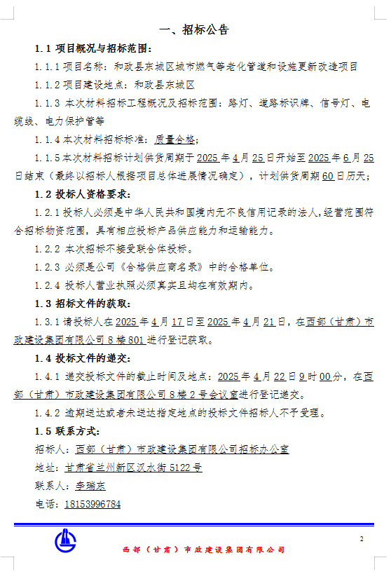 和政縣東城區(qū)城市燃?xì)獾壤匣艿篮驮O(shè)施更新改造項目-路燈、道路標(biāo)識牌、信號燈、電纜線、電力保護管等招標(biāo)公告