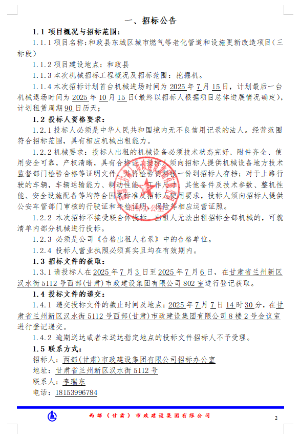 和政縣東城區(qū)城市燃氣等老化管道和設(shè)施更新改造項目(三標(biāo)段)--機械租賃-招標(biāo)公告