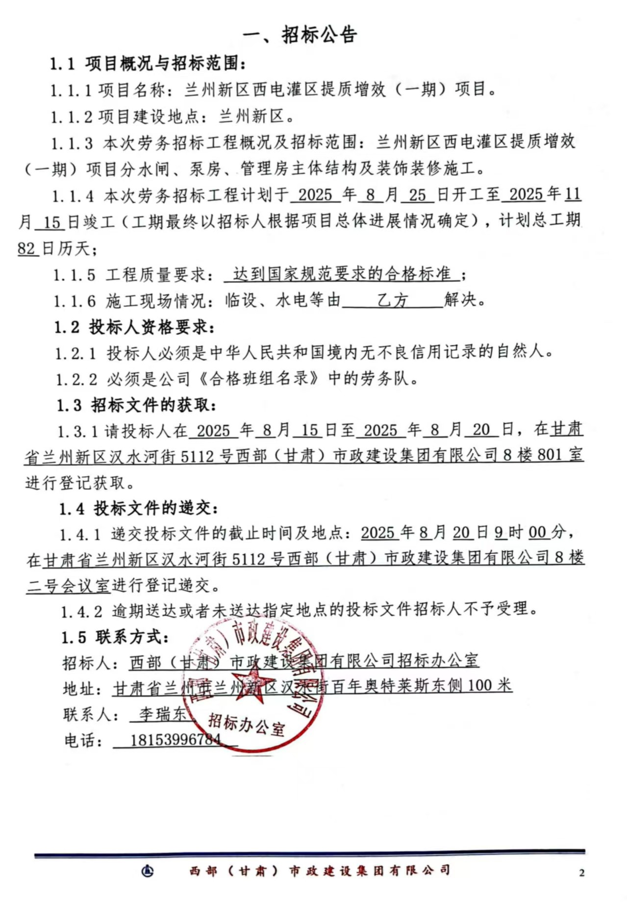 蘭州新區(qū)西電灌區(qū)提質(zhì)增效(一期)項(xiàng)-勞務(wù)分包-招標(biāo)公告