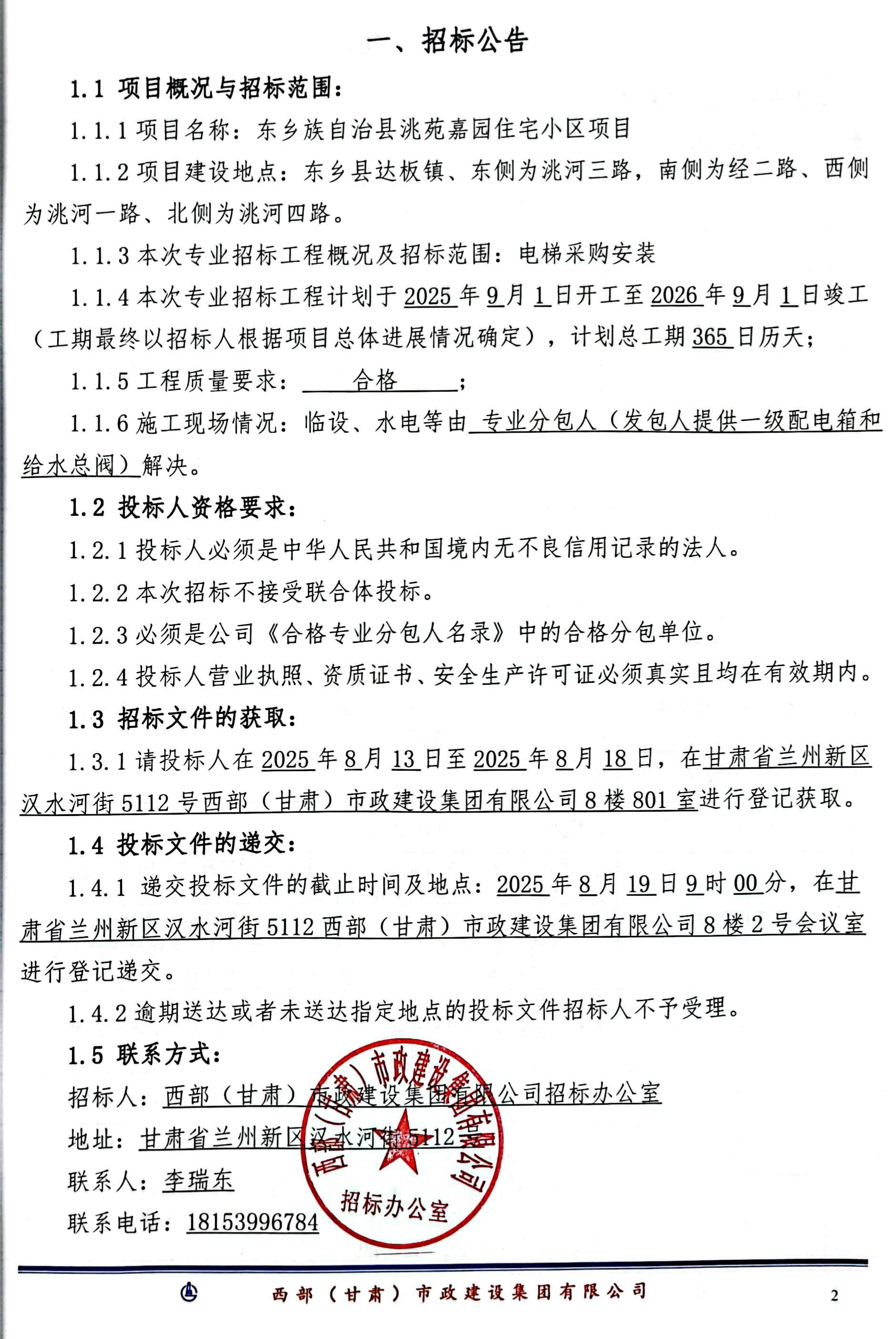 東鄉(xiāng)族自治縣洮苑嘉園住宅小區(qū)項目-電梯采購安裝-招標(biāo)公告