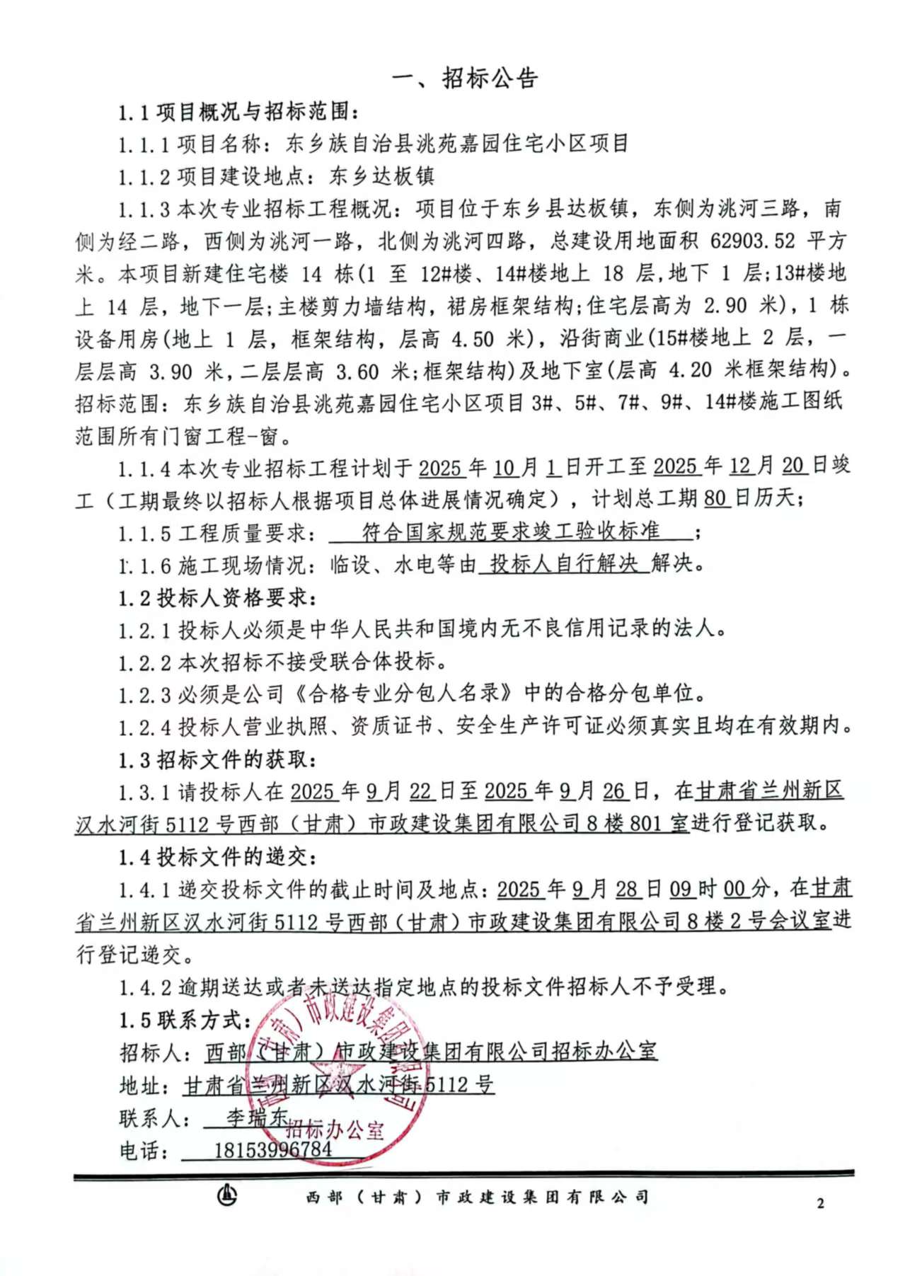 東鄉(xiāng)族自治縣洮苑嘉園住宅小區(qū)項(xiàng)目-窗-招標(biāo)公告