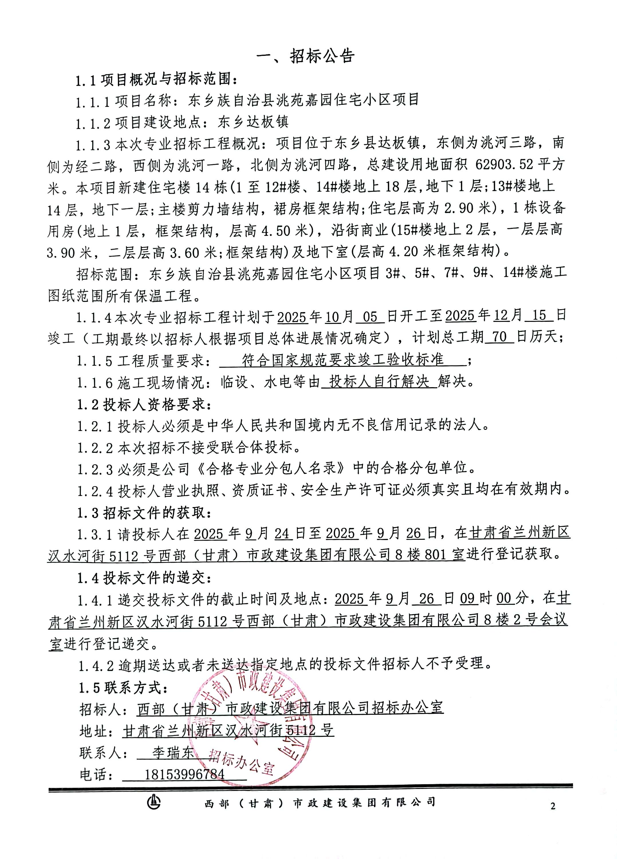 東鄉(xiāng)族自治縣洮苑嘉園住宅小區(qū)項(xiàng)目-保溫工程-招標(biāo)公告