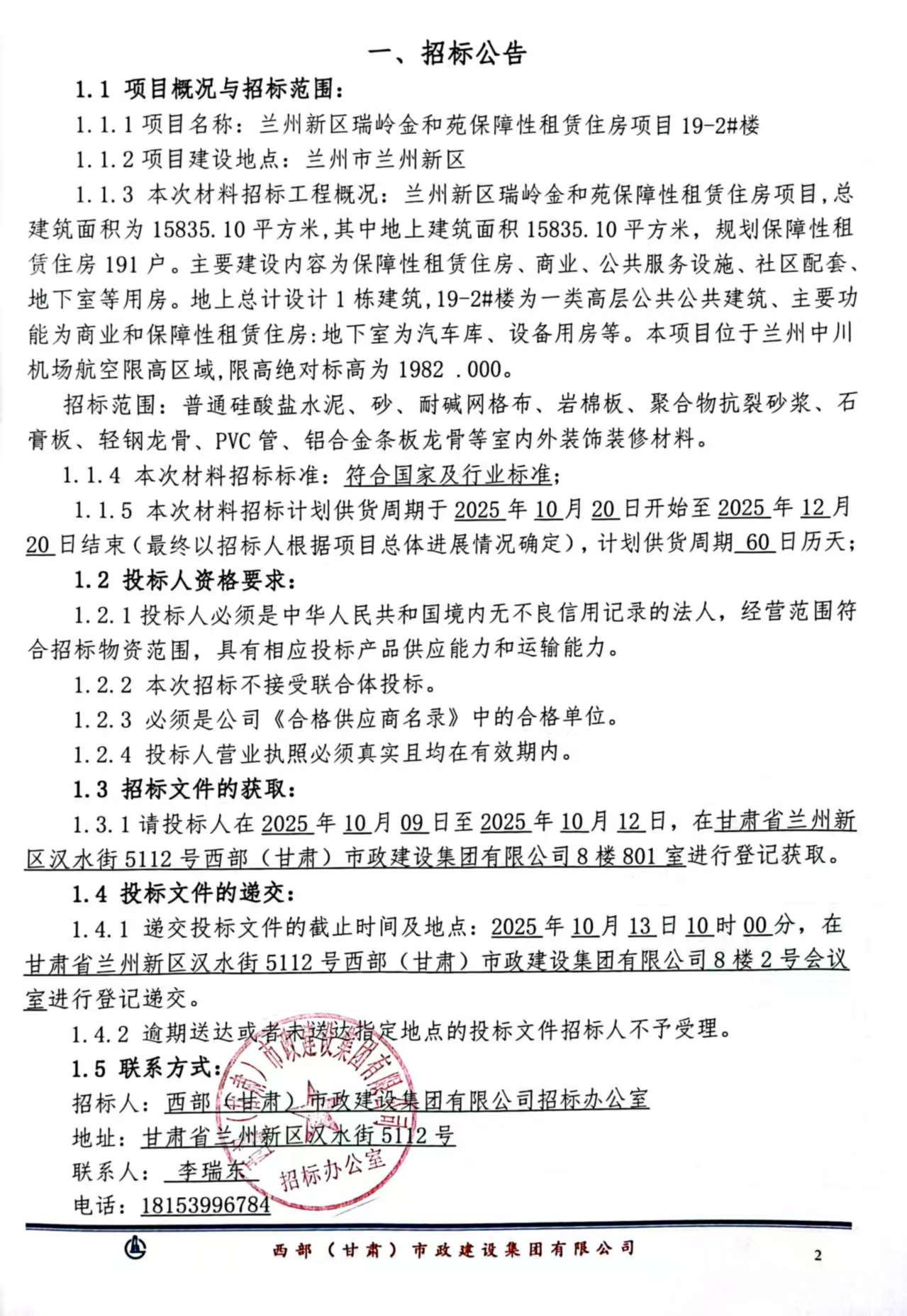 蘭州新區(qū)瑞嶺金和苑保障性租賃住房項(xiàng)目19-2#樓-室內(nèi)外裝飾裝修材料-招標(biāo)公告