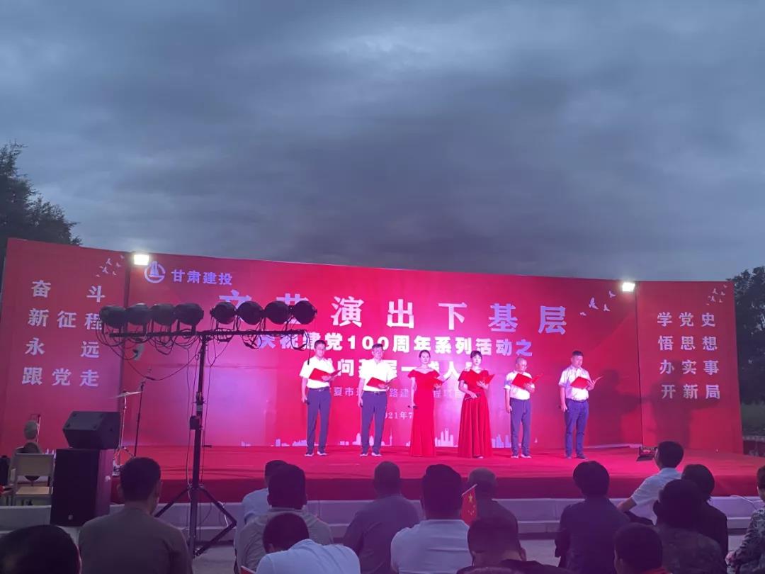 為喜迎中國(guó)共產(chǎn)黨100周年華誕,響應(yīng)文藝演出活動(dòng)下基層政策。7月1日晚,由甘肅建投臨夏市環(huán)城北路建設(shè)工程項(xiàng)目部組織,隧道公司四公司臨夏市環(huán)城北路建設(shè)工程四區(qū)承辦,慶祝中國(guó)共產(chǎn)黨建黨100周年系列活動(dòng)之-——慰問(wèn)基層一線人員文藝匯演活動(dòng)在四工區(qū)項(xiàng)目施工現(xiàn)場(chǎng)隆重舉行。