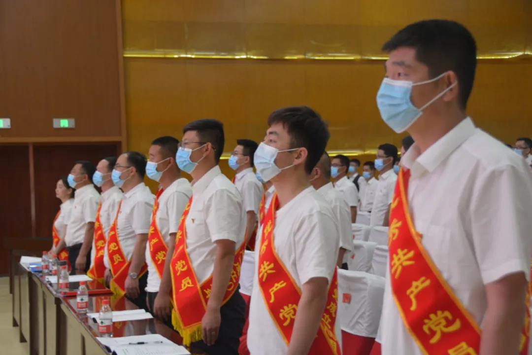 表彰會(huì)現(xiàn)場(chǎng),新入黨黨員登臺(tái),隧道公司黨委書記、董事長(zhǎng)劉文太同志帶領(lǐng)新黨員開展入黨宣誓儀式,觀眾席全體共產(chǎn)黨員一同重溫入黨誓詞。