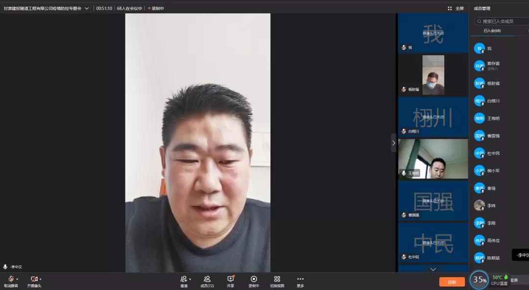 ”要壓實(shí)疫情防控主體責(zé)任。各單位、部門、項(xiàng)目部的主要負(fù)責(zé)人作為疫情防控第一責(zé)任人,務(wù)必嚴(yán)格按照公司疫情防控實(shí)施方案,扛起各自的責(zé)任,每日對(duì)所分管單位(部門)人員的疫情防控工作進(jìn)行監(jiān)督落實(shí),特別是對(duì)有異常的人員,要根據(jù)當(dāng)?shù)匾咔榉揽匾筮M(jìn)行隔離,并及時(shí)上報(bào)單位及屬地衛(wèi)生防疫部門。要分級(jí)建立微信群進(jìn)行網(wǎng)絡(luò)監(jiān)管。全司上下要分級(jí)建立疫情防控群,群主負(fù)責(zé)每日測(cè)溫及三碼(安全自查碼、大數(shù)據(jù)通行碼、健康出行碼)信息的收集匯總、數(shù)據(jù)臺(tái)賬的建立保存及日?qǐng)?bào)工作,以便于公司隨時(shí)掌握全員動(dòng)態(tài);堅(jiān)持每日做好衛(wèi)生防疫消殺及進(jìn)場(chǎng)人員檢查等現(xiàn)場(chǎng)防疫工作,公司領(lǐng)導(dǎo)、相關(guān)部門要隨時(shí)對(duì)現(xiàn)場(chǎng)進(jìn)行視頻檢查。要落實(shí)好疫情防控各項(xiàng)要求,大力支持屬地防疫工作。各單位、部門、項(xiàng)目部所屬人員必須嚴(yán)格執(zhí)行屬地疫情防控要求,根據(jù)屬地安排及時(shí)進(jìn)行核酸檢測(cè),需要出行的及時(shí)向所屬單位、部門、項(xiàng)目部報(bào)備;以公司名義分別向當(dāng)?shù)胤酪卟块T捐贈(zèng)物資,勇?lián)鐣?huì)責(zé)任,彰顯國(guó)企擔(dān)當(dāng)。要確保防疫物資配備到位。辦公室、工會(huì)要做好疫情期間防護(hù)用品的配備以及項(xiàng)目部層面物資配備情況的監(jiān)督檢查工作,防疫物資緊缺的單位要及時(shí)上報(bào)工會(huì),由工會(huì)負(fù)責(zé)解決。居家辦公期間要嚴(yán)格執(zhí)行公司勞動(dòng)紀(jì)律。居家辦公務(wù)必認(rèn)真負(fù)責(zé),不能因居家影響工作質(zhì)量,要執(zhí)行正常上下班時(shí)間,在規(guī)定時(shí)限內(nèi)完成所安排的各項(xiàng)工作。要保證電話24小時(shí)暢通,確保疫情期間現(xiàn)場(chǎng)生產(chǎn)工作正常開展,對(duì)于因聯(lián)系不到而影響工作的,要嚴(yán)肅追責(zé)。工作時(shí)間內(nèi),1小時(shí)內(nèi)聯(lián)系不到的,按曠工處理。要抓好施工現(xiàn)場(chǎng)安全質(zhì)量工作。務(wù)必確保安全生產(chǎn)資源及時(shí)到位;針對(duì)當(dāng)前封閉管理的現(xiàn)狀,建議以視頻的方式對(duì)項(xiàng)目進(jìn)行檢查并做好記錄;冬季施工務(wù)必注意有限空間作業(yè)中有害氣體的檢測(cè),高空作業(yè)要按施工方案措施要求做到位;項(xiàng)目經(jīng)理要扛起責(zé)任,把好工程安全質(zhì)量關(guān)。要正常開展日常管理工作。各單位按照值班表對(duì)每日的工作進(jìn)行安排督導(dǎo),施工現(xiàn)場(chǎng)及機(jī)關(guān)部門要及時(shí)做好與集團(tuán)公司、政府相關(guān)部門及業(yè)主單位的聯(lián)系溝通;按時(shí)做好上級(jí)部門要求的資料上報(bào)工作;宣傳部門要積極引導(dǎo),做好正面宣傳,及時(shí)在各類平臺(tái)上發(fā)布公司關(guān)于疫情防控方面的重要工作和部署“。 對(duì)于疫情防控及生產(chǎn)經(jīng)營(yíng)工作,隧道公司黨委副書記、總經(jīng)理李中漢提出以上“七要”的具體措施,同時(shí),對(duì)于疫情防控異常情況的處置,他提出以下要求:要嚴(yán)格執(zhí)行應(yīng)急處置方案,發(fā)現(xiàn)黃碼,要求原地隔離并及時(shí)上報(bào)公司;發(fā)現(xiàn)高溫、咳嗽等疑似癥狀,要第一時(shí)間設(shè)置隔離場(chǎng)所,對(duì)疑似癥狀人員進(jìn)行隔離,并上報(bào)公司;發(fā)現(xiàn)紅碼,要立即上報(bào)總經(jīng)理;對(duì)于當(dāng)?shù)赝ㄖ蠹懈綦x的,在配合當(dāng)?shù)剡M(jìn)行隔離的同時(shí)及時(shí)上報(bào)公司;要以項(xiàng)目部→安全質(zhì)量部→副總經(jīng)理→總經(jīng)理→董事長(zhǎng)的程序逐級(jí)迅速報(bào)備。
