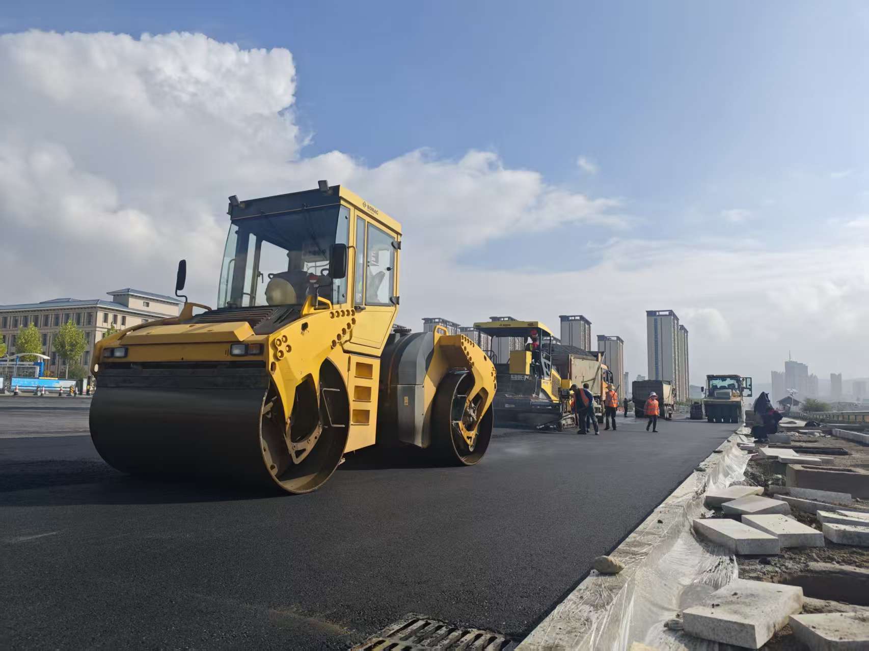 從路基開挖、地下管網(wǎng)鋪設(shè),到水穩(wěn)層施工、瀝青混凝土面層攤鋪,項目各施工環(huán)節(jié)緊密銜接、有序推進(jìn)。值得一提的是,在推進(jìn)建設(shè)進(jìn)度的同時,項目部始終將群眾利益放在首位,積極采取多項舉措減少施工對周邊居民生活的影響。通過合理調(diào)整施工時間,避開居民午休、夜間休息時段開展噪聲較大的作業(yè);采用灑水降塵、渣土全覆蓋、設(shè)置圍擋等措施,有效控制施工揚塵污染;此外,項目部還主動與周邊社區(qū)、居民建立溝通機(jī)制,定期通報項目建設(shè)進(jìn)展,及時回應(yīng)群眾關(guān)切問題,以貼心服務(wù)贏得了沿線群眾的廣泛理解與支持。正是憑借著這份責(zé)任與擔(dān)當(dāng),項目團(tuán)隊在克服諸多困難后,最終實現(xiàn)了在國慶前夕順利通車的目標(biāo)。