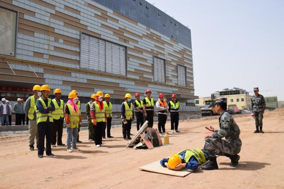 甘肅軍創(chuàng)培訓(xùn)中心培訓(xùn)人員在項(xiàng)目現(xiàn)場(chǎng)開展消防知識(shí)宣傳,向項(xiàng)目一線人員普及安全消防知識(shí),從火災(zāi)隱患自查、初起火災(zāi)自救、組織人員疏散、消防安全“四個(gè)能力”方面詳細(xì)講解了如何防范、預(yù)防火災(zāi)事故,詳細(xì)介紹消防防護(hù)裝備的作用,現(xiàn)場(chǎng)演示消防器材、防毒面罩等消防救援器材的使用方法。