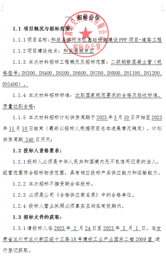 和政縣濱河?xùn)|區(qū)基礎(chǔ)設(shè)施建設(shè)PPP項目-道路工程材料招標(biāo)公告