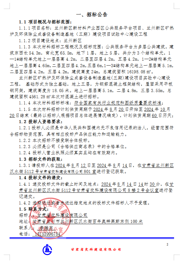 蘭州新區(qū)新材料產(chǎn)業(yè)園區(qū)公共服務(wù)平臺項目、 蘭州新區(qū)礦熱爐及環(huán)保除塵成套設(shè)備制造基地(三期)建設(shè)項目試驗中心建設(shè)工程混凝土 招標公告