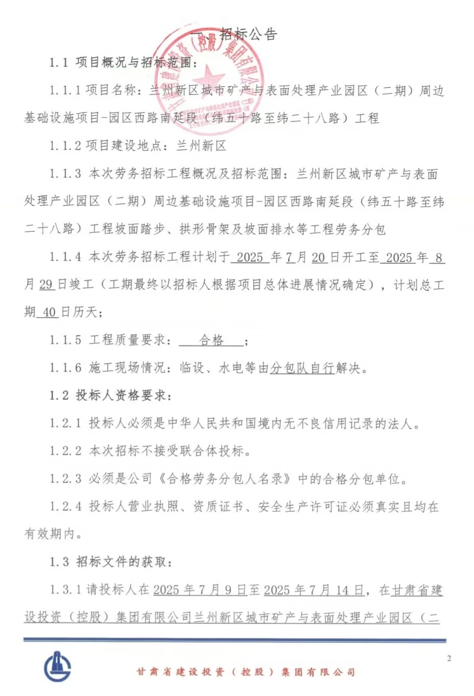 蘭州新區(qū)城市礦產(chǎn)與表面處理產(chǎn)業(yè)園區(qū)(二期)周邊基礎(chǔ)設(shè)施項(xiàng)目-園區(qū)西路南延段(緯五十路至緯二十八路)-園區(qū)西路南延段(緯五十路至緯二十八路)—?jiǎng)趧?wù)分包